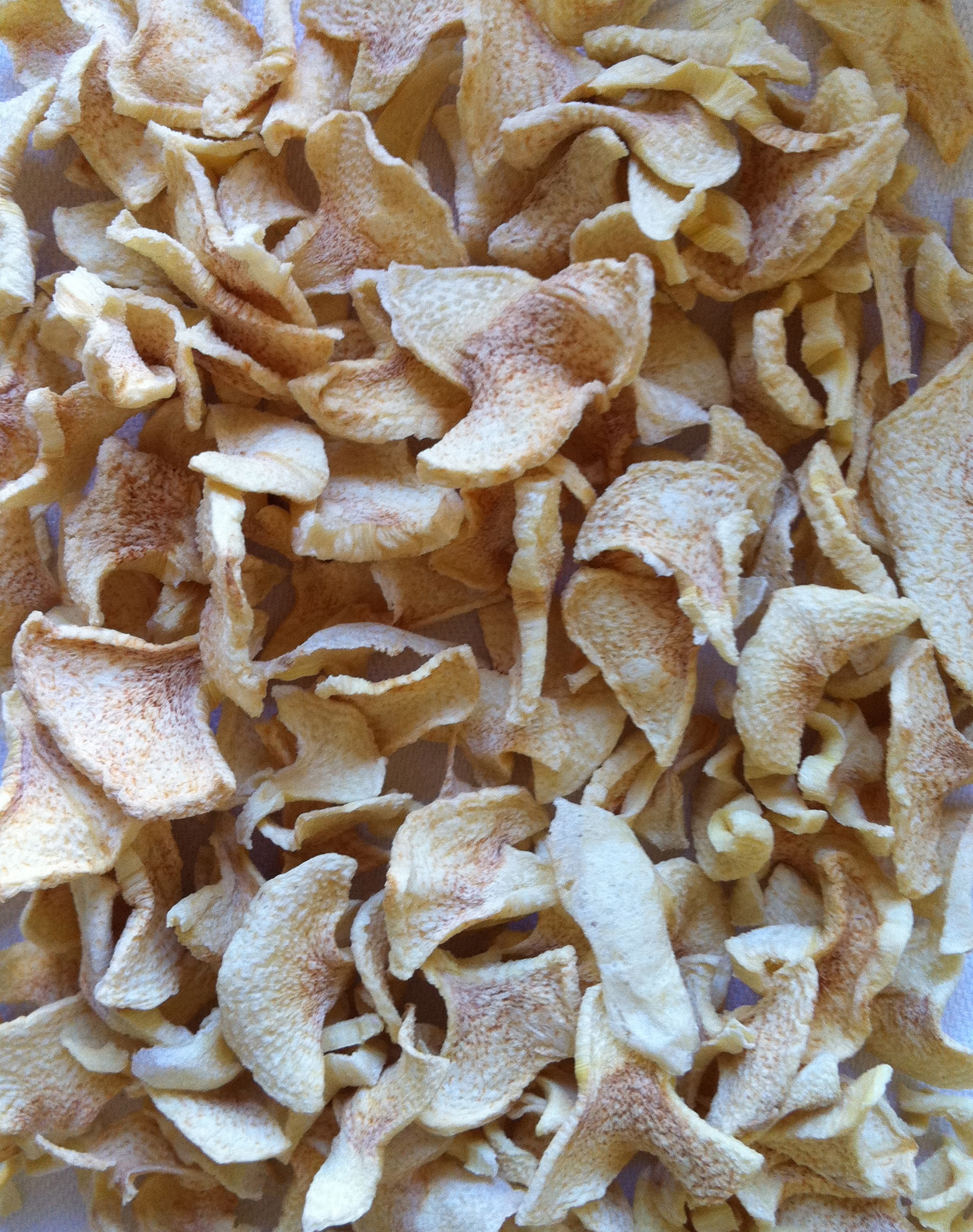 - Most dehydrated purees look like paper. You can peal if of the foil. If it’s streching, it’s not dry enough. Cut the “puree paper” into small pieces. You can use a blender to make it into a powder.